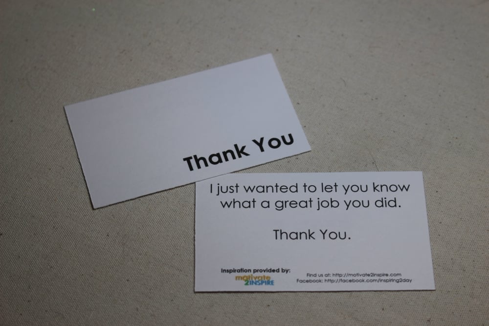 Thank You Minicards are a great way to do that. These cards fit right in your wallet or purse and can be taken out quickly to tell someone they did a great job.