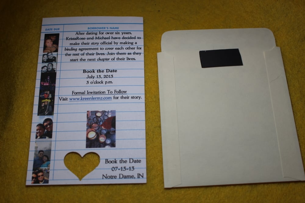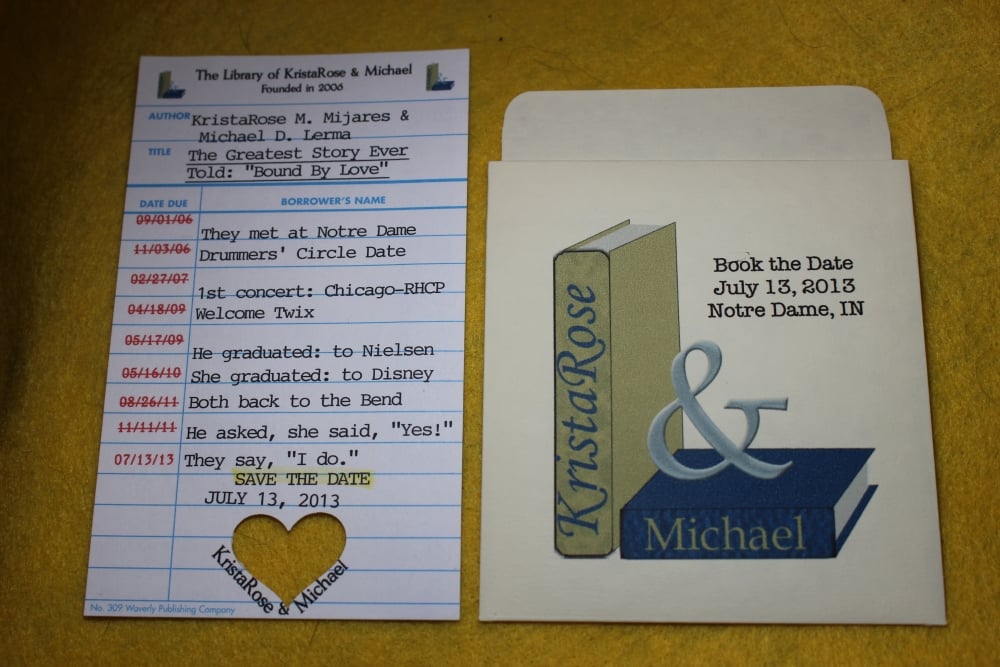 Our own wedding was library themed and the examples below are from our own save the dates. We have gotten many compliments about them and we want to help others have fantastic save the dates as well!
